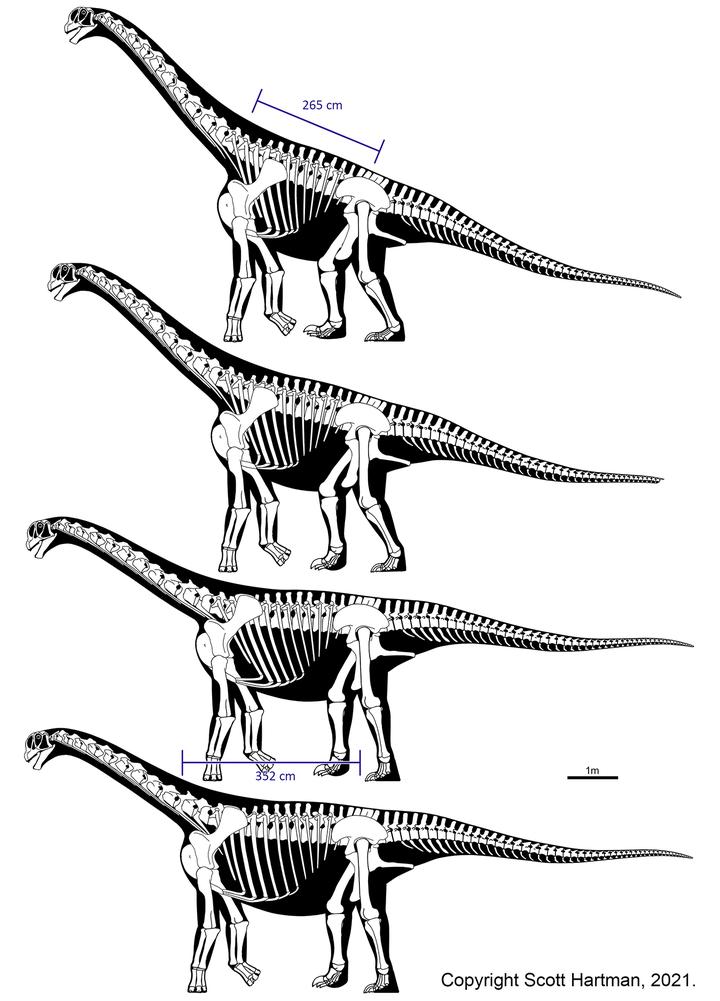 Previous attempts to reconstruct the posture and potential range of motion in the cervical series of sauropod dinosaurs have focused on restoring the osteological neutral position (ONP) of the axial column, as well as attempts to link ONP with the degree of habitual vertebral flexion observed in extant vertebrates (Stevens & Parrish, 2005; Taylor et al, 2009). While placement of the pectoral girdle has been examined in depth (e.g. Bonnan et al., 2005), the roll of differing interpretations of appendicular posture has been largely ignored. To evaluate the impact of competing functional interpretations of the pectoral girdle and appendicular skeleton, a quantitative analysis was conducted on the three most commonly used interpretations of pectoral girdle placement in the literature, and several models of limb kinematics. Testing was carried out on a 3D digital data set of Camarasaurus, as well as dimensionally-accurate skeletal diagrams of Camarasaurus and several other neosauropods to increase taxonomic sampling. Results show that differing interpretations of the angle of the scapula on the body had a minimal impact on the elevation of the presacral column, while the location of the pectoral girdle had a significant impact, with more ventrally and posteriorly located pectoral girdles leading to progressively higher head height. Published interpretations of forelimb posture in sauropods vary mostly in the orientation of the humerus and the degree of eversion in the elbow (e.g. Bonnan, 2003). Neither was found to have a significant impact on head height. Hind limb kinematics were found to have a larger impact on head height, as knee and ankle flexure reduced pelvic height, which in turn raised the cervical series. Differences in restoring the pes of sauropods differ markedly, from digitigrade to plantigrade; lowering the foot into a plantigrade stance was found to increase head height. These findings demonstrate that restoring the axial column alone is insufficient to accurately estimate head height in sauropods. Competing interpretations of pectoral girdle position and hind limb kinematics can influence the angle of the cervical series significantly, suggesting that a more holistic approach must be taken with regard to sauropod neck posture.
